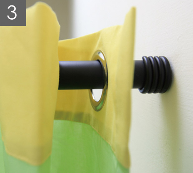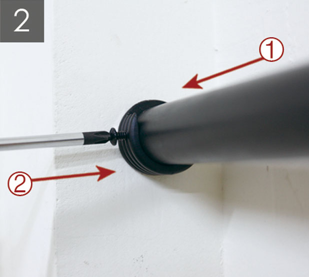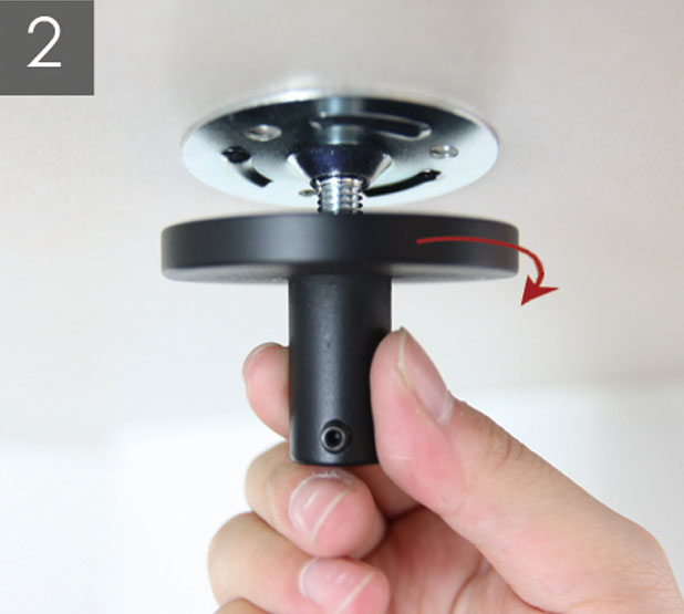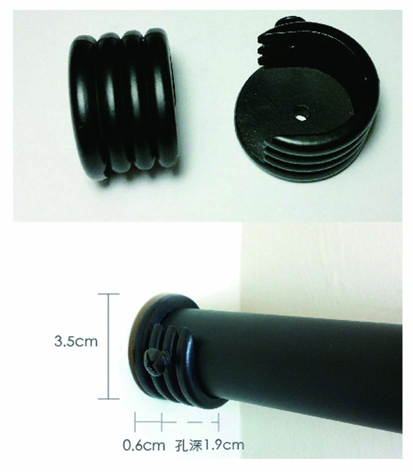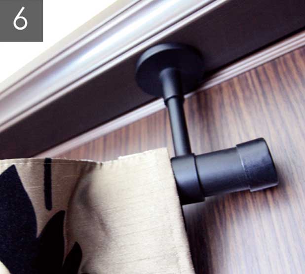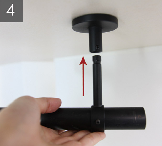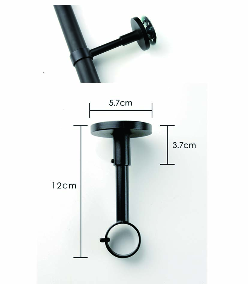 3. Insert the curtain pole into the ring of bracket arm and screw with hex key to prevent it from falling.